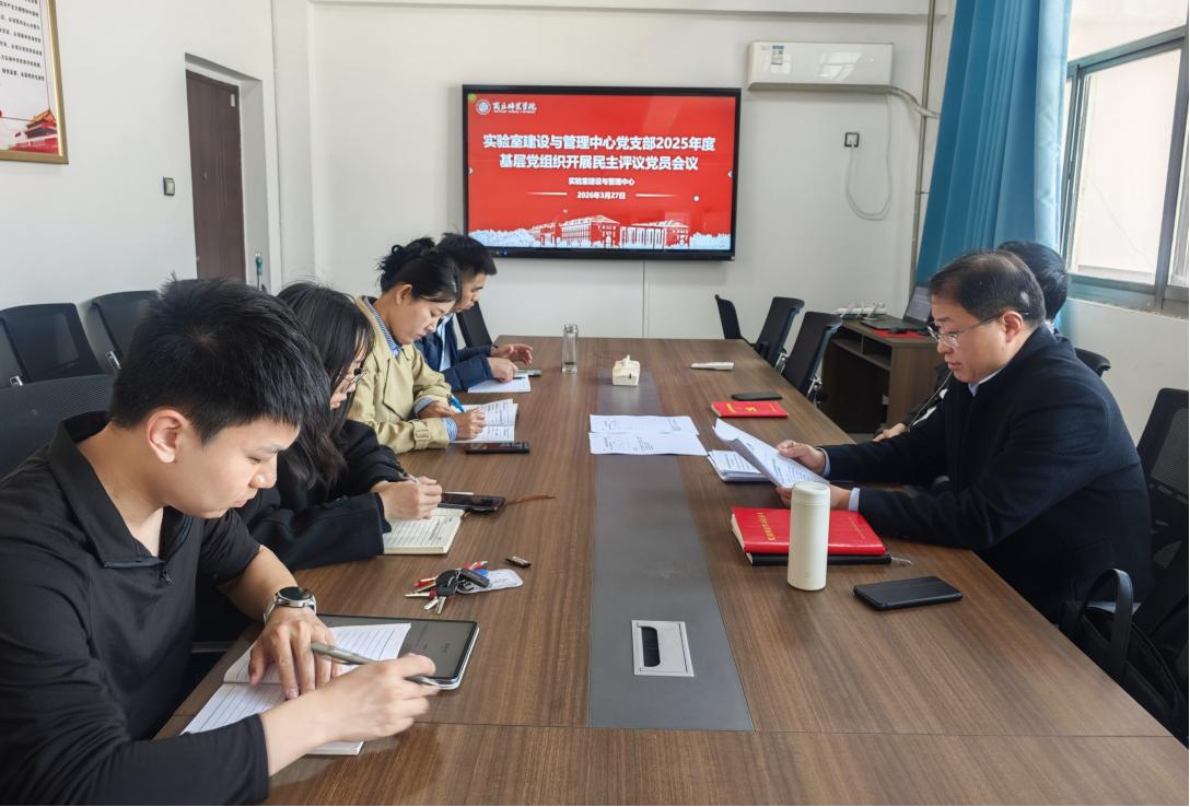 为深入学习贯彻党的二十届四中全会精神,落实学校党委关于基层党组织组织生活会和民主评议党员工作的部署要求,实验室建设与管理中心于2026年3月27日下午在梁园校区应天楼616会议室召开 2025年度基层党组织民主评议党员会议。会议由实验室建设与管理中心党支部书记赵龙飞主持,全体党员参会。