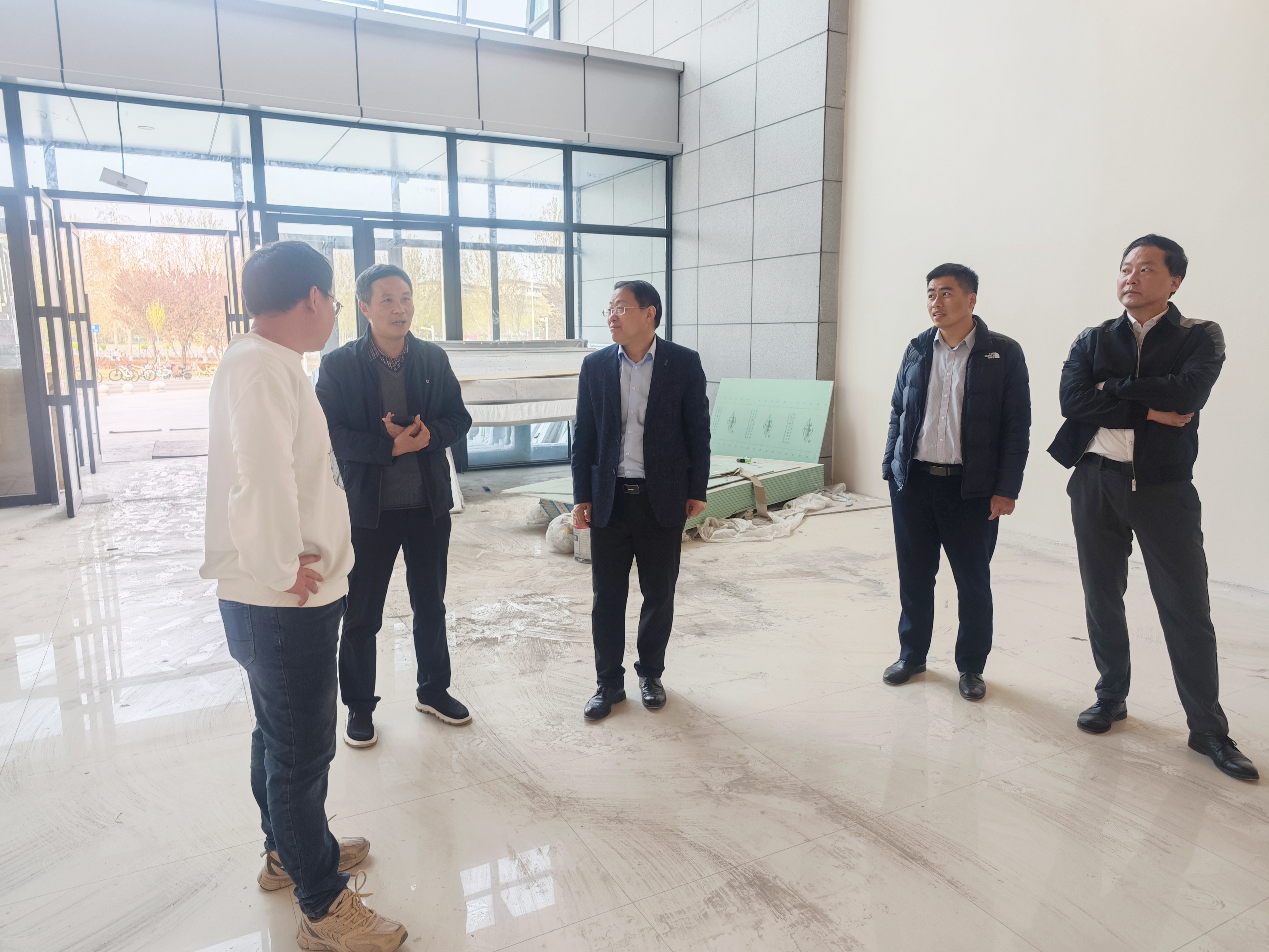 为切实推动学校艺术教育产学研融合平台建设项目(三期)高质量落地竣工,3月31日,实验室建设与管理中心主任赵龙飞带队,副主任霍特、副科长刘启祥、科员黄锴一行,赴项目施工现场梁园校区艺术中心开展专项督促指导,项目申报单位美术学院院长李林及项目相关负责人陪同查看。